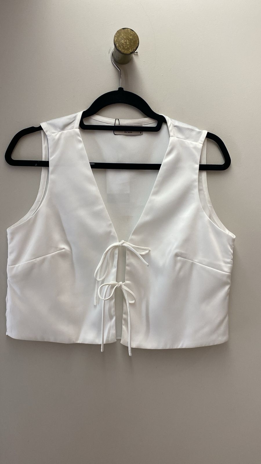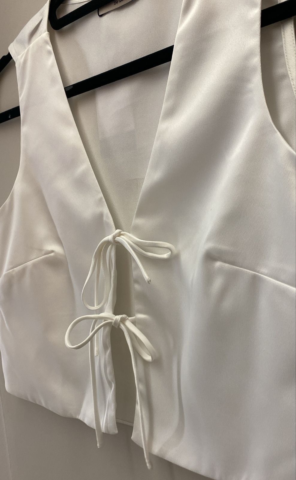 Conjunto em cetim branco com blusa com amarrações.