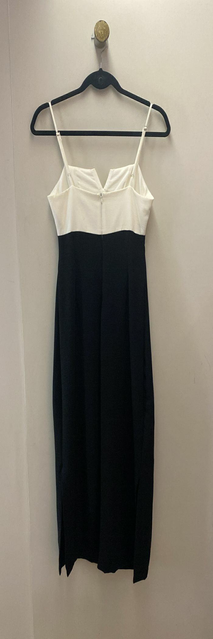 Vestido em crepe alfaiataria preto e branco , fechamento com zíper nas costas e fenda nas duas laterais.