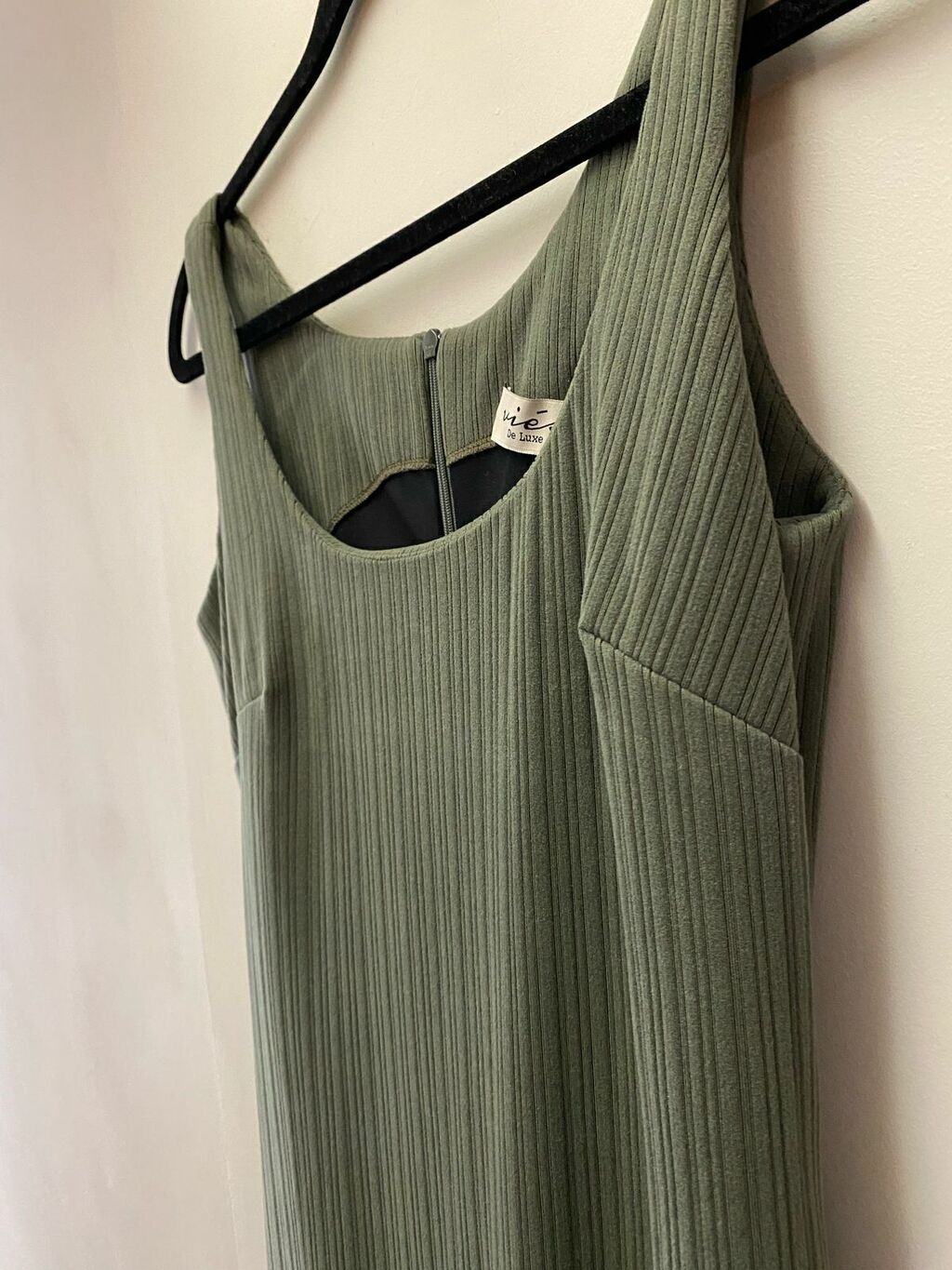 Vestido Eloisa: A escolha perfeita para qualquer ocasião! Este vestido em malha canelada verde é um verdadeiro coringa no guarda-roupa. Com um decote quadrado elegante e uma saia reta com fendas laterais, ele proporciona um visual moderno e sofisticado. O fechamento com zíper nas costas garante praticidade e um ajuste impecável.