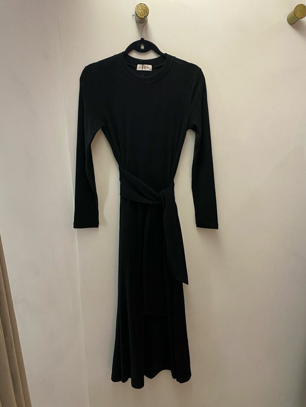 Vestido Marcela: um clássico moderno em malha canelada preto. Com amarração para dar uma acinturada, este vestido oferece um conforto irresistível. Super versátil, para ter e usar muito!