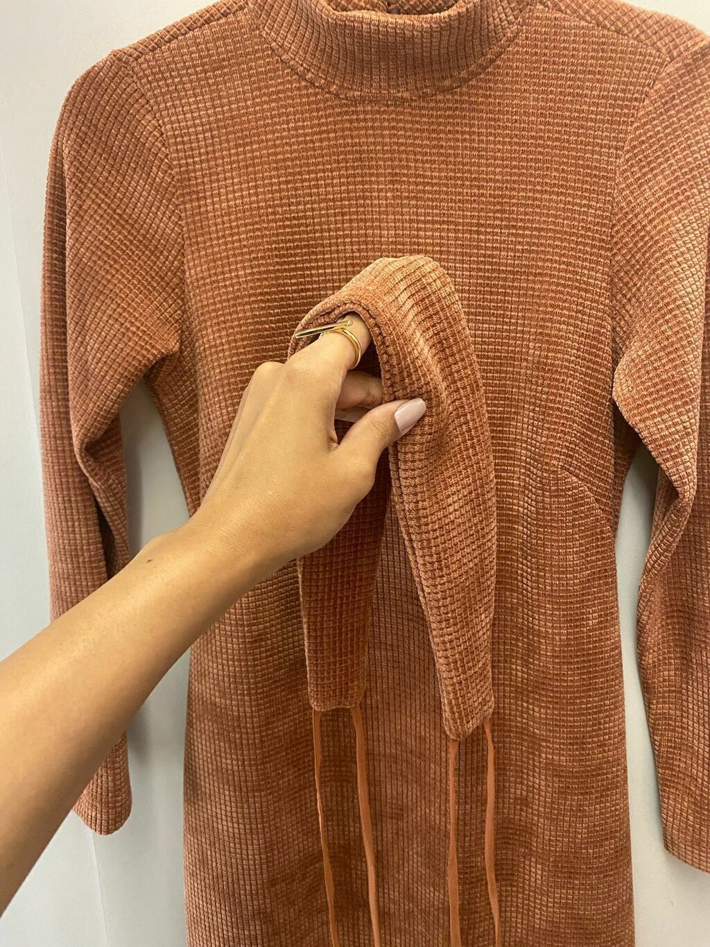 Vestido Midi Catarina em veludo salmão, destaca-se pela sua elegância atemporal. Com gola alta e saia reta, possui fenda nas costas. Ideal para o inverno, o tecido proporciona um toque super agradável e muito conforto.